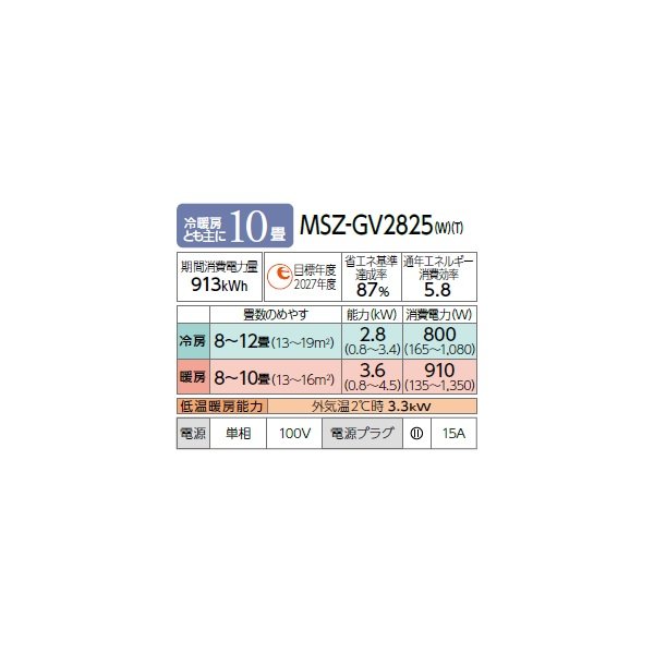 型番:MSZ-GV2825-W / MSZ-GV2825 / MSZGV2825