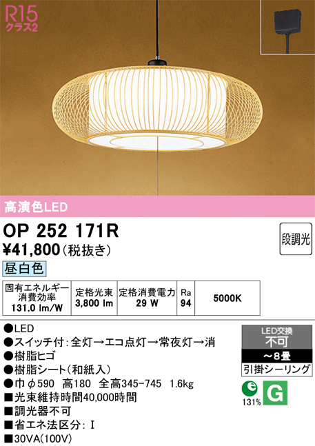オーデリック OP252171R ペンダントライト 8畳 段調光 和風 LED一体型 昼白色 引掛シーリング