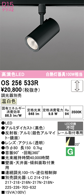オーデリック OS256533R スポットライト 調光 調光器別売 LED一体型 温白色 プラグタイプ ブラック