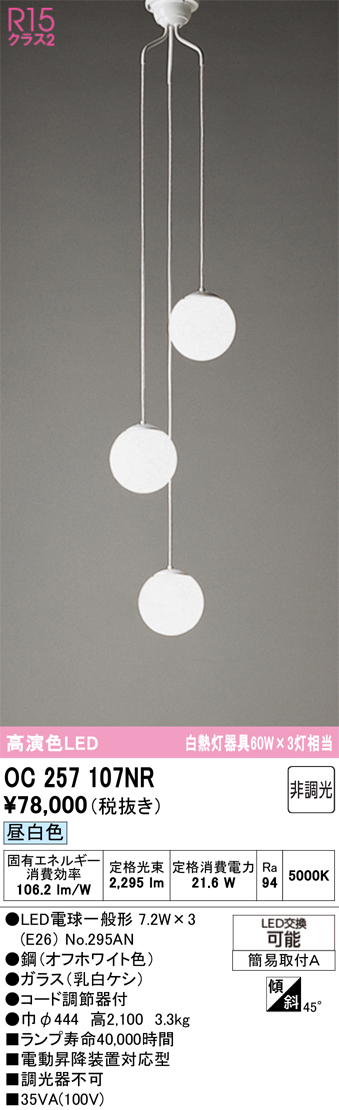 オーデリック OC257107NR(ランプ別梱) シャンデリア 非調光 LEDランプ 昼白色 オフホワイト