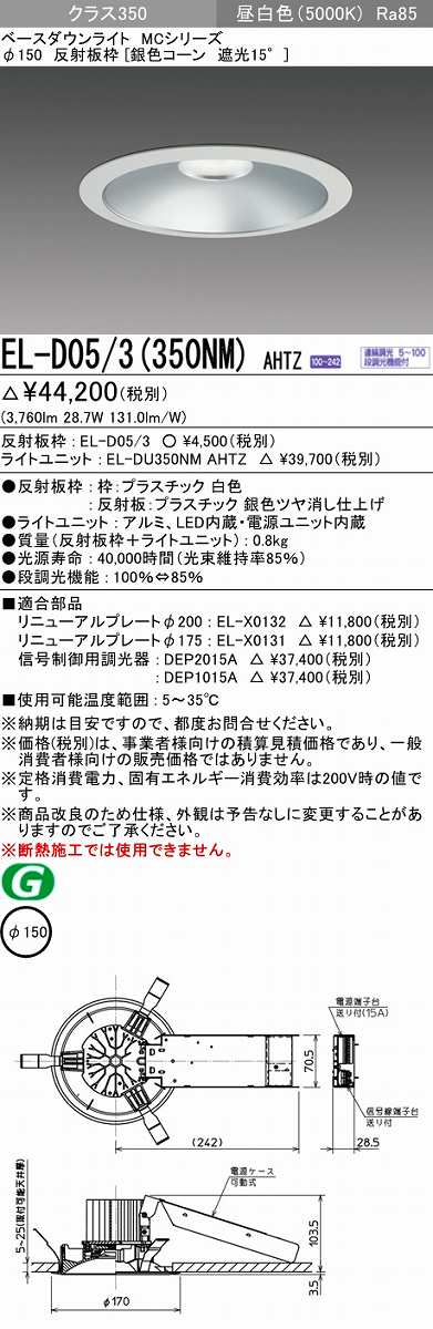 三菱 EL-D05/3(350NM) AHTZ LEDダウンライト 銀色コーン遮光15度 昼白色 φ150 電源ユニット内蔵 受注生産品 [§]