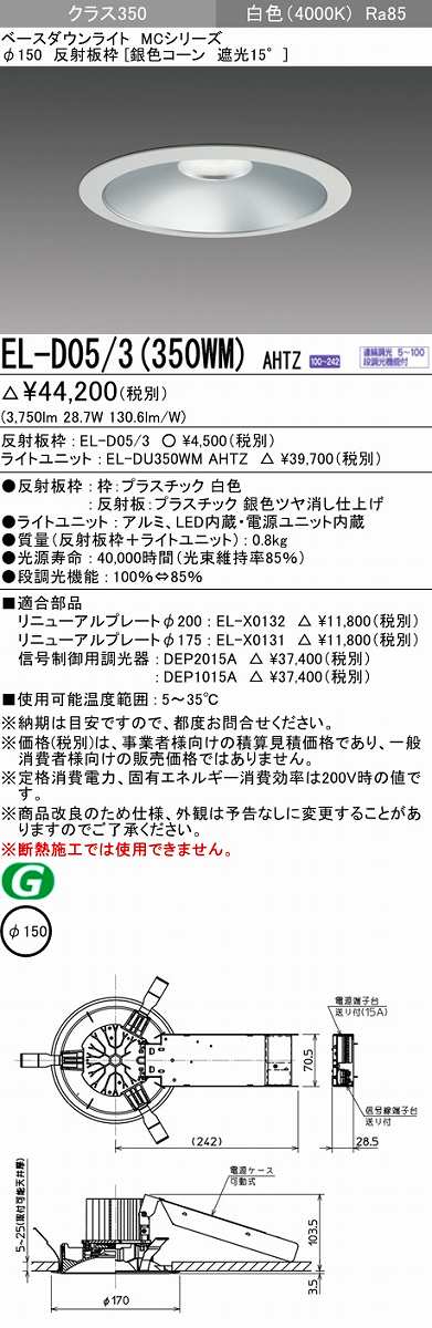 三菱 EL-D05/3(350WM) AHTZ LEDダウンライト 銀色コーン遮光15度 白色 φ150 電源ユニット内蔵 受注生産品 [§]