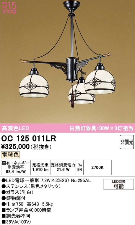 オーデリック OC125011LR(ランプ別梱) ペンダントライト 非調光 和風 LEDランプ 電球色 黒色メタリック