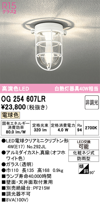 オーデリック OG254607LR(ランプ別梱) ブラケットライト 非調光 LEDランプ 電球色 防雨型 オフホワイト