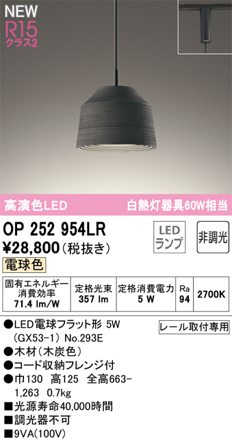 オーデリック OP252954LR(ランプ別梱) ペンダントライト 非調光 LEDランプ 電球色 高演色LED プラグタイプ 木製