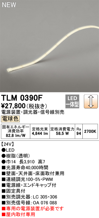 オーデリック TLM0390F 間接照明 長3910 テープライト ドットレス・トップビュータイプ 調光 電源装置・調光器・信号線別売 LED一体型 電球色 受注品 [§]
