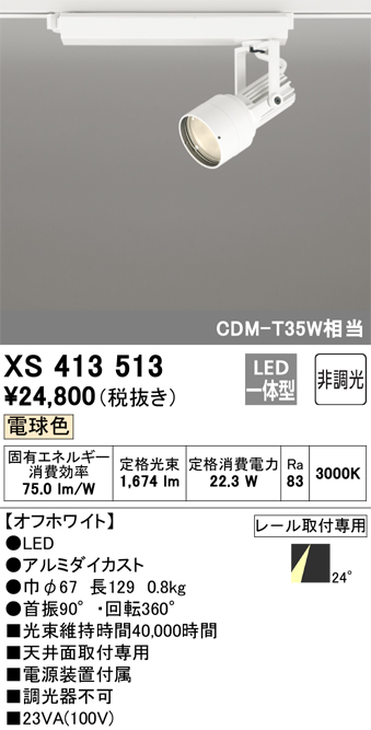 オーデリック XS413513 スポットライト 非調光 LED一体型 レール取付専用 電球色 オフホワイト