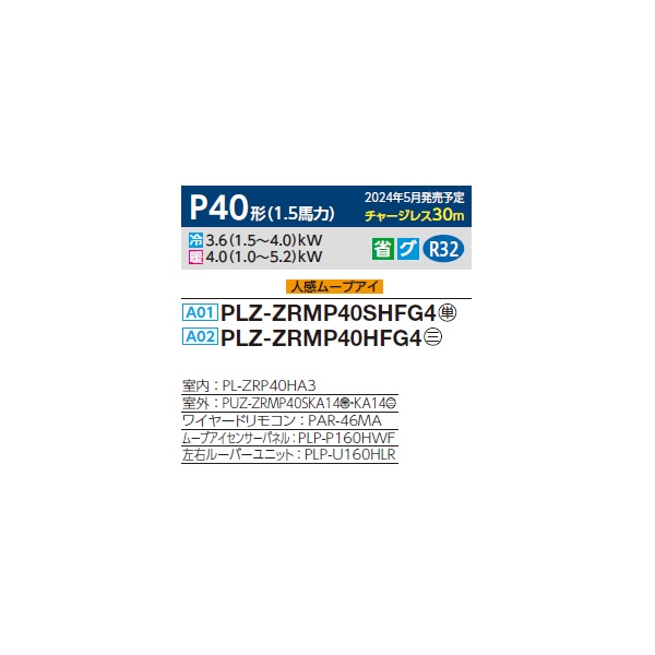 三菱 PLZ-ZRMP40HFG4 業務用エアコン 4方向天井カセット i-スクエアタイプ スリムZR 標準シングル P40形 1.5馬力 三相 200V ワイヤード ♪∀