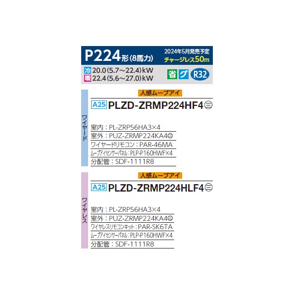 三菱 PLZD-ZRMP224HF4 業務用エアコン 4方向天井カセット i-スクエアタイプ スリムZR 同時フォー P224形 8馬力 三相 200V ワイヤード ♪∀