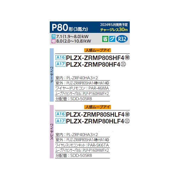 三菱 PLZX-ZRMP80HLF4 業務用エアコン 4方向天井カセット i-スクエアタイプ スリムZR 同時ツイン P80形 3馬力 三相 200V ワイヤレス ♪∀