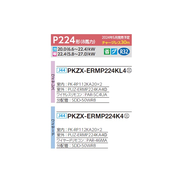 三菱 PKZX-ERMP224KL4 業務用エアコン 壁掛 スリムER 同時ツイン P224形 8馬力 三相 200V ワイヤレス ♪∀