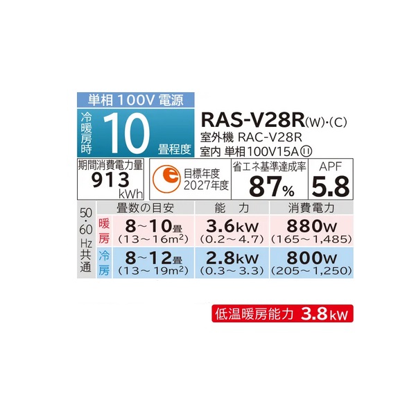 日立 RAS-V28R(C) エアコン10畳 ルームエアコン Vシリーズ 白くまくん 単相100V 10畳程度 シャインベージュ (RAS-V28N-Cの後継品) ♪