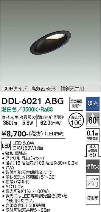 大光電機(DAIKO) DDL-6021 ABG ダウンライト 埋込穴φ100 調光 LED 温白色 COBタイプ 高気密SB形 傾斜天井用 防雨形 準耐火 ブラック