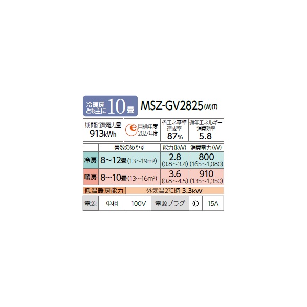 三菱 MSZ-GV2825(T) エアコン 10畳 ルームエアコン GVシリーズ 単相100V/15A 10畳程度 ブラウン (MSZ-GV2824-Tの後継品) 受注生産品§