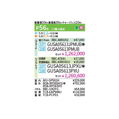日本キヤリア/旧東芝 GUSA05613JPXU 業務用エアコン 天井カセット 4方向 大清快 スーパーパワーエコゴールド シングル P56 2.3馬力 単相200V ワイヤレス ♪∀ [戻る]