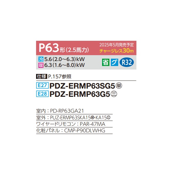 三菱 PDZ-ERMP63G5 業務用エアコン 天井ビルトイン スリムER 標準シングル P63形 2.5馬力 三相 200V ワイヤード ♪∀