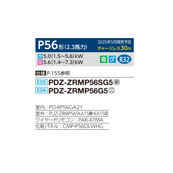 三菱 PDZ-ZRMP56G5 業務用エアコン 天井ビルトイン スリムZR 標準シングル P56形 2.3馬力 三相 200V ワイヤード ♪∀
