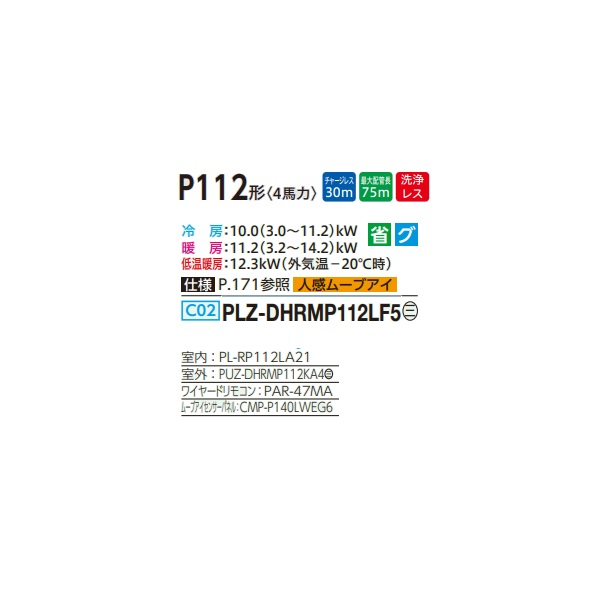 三菱 PLZ-DHRMP112LF5 業務用エアコン 2方向天井カセット ズバ暖スリム DHシリーズ 標準シングル P112形 4馬力 三相 200V ワイヤード ♪