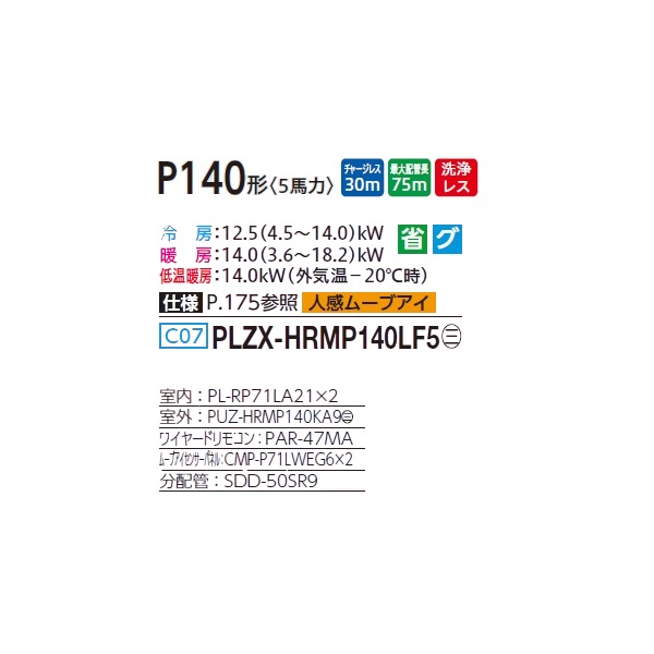 三菱 PLZX-HRMP140LF5 業務用エアコン 2方向天井カセット ズバ暖スリム Hシリーズ 同時ツイン P140形 5馬力 三相 200V ワイヤード ♪ [戻る]