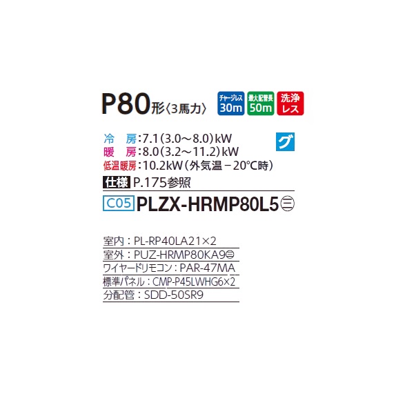 三菱 PLZX-HRMP80L5 業務用エアコン 2方向天井カセット ズバ暖スリム Hシリーズ 同時ツイン P80形 3馬力 三相 200V ワイヤード ♪