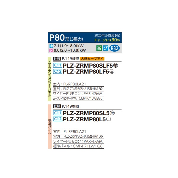 三菱 PLZ-ZRMP80LF5 業務用エアコン 2方向天井カセット スリムZR 標準シングル P80形 3馬力 三相 200V ワイヤード ♪∀