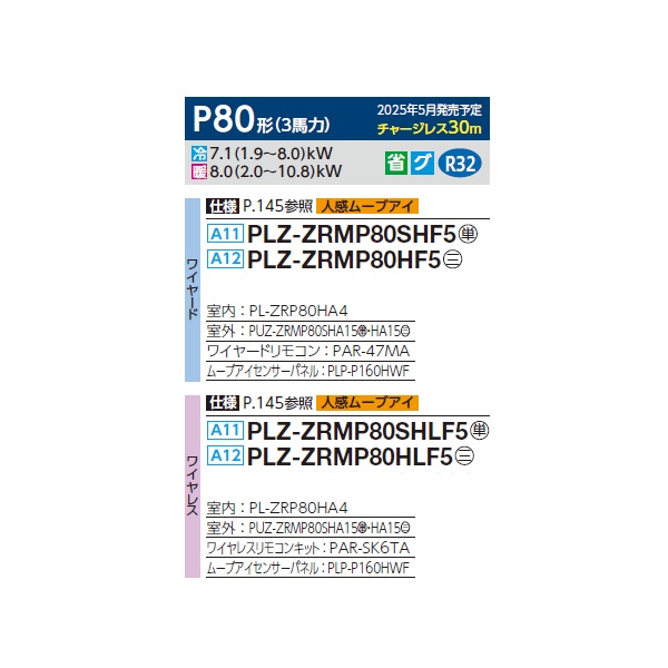 三菱 PLZ-ZRMP80SHLF5 業務用エアコン 4方向天井カセット i-スクエアタイプ スリムZR 標準シングル P80形 3馬力 単相 200V ワイヤレス ♪∀