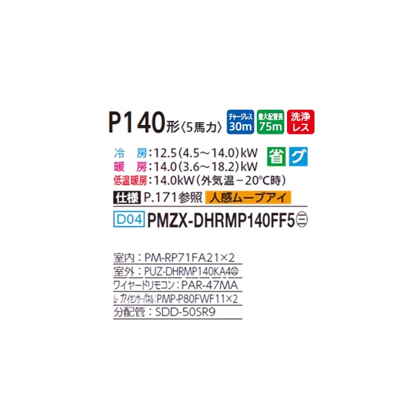 三菱 PMZX-DHRMP140FF5 業務用エアコン 1方向天井カセット ズバ暖スリム DHシリーズ 同時ツイン P140形 5馬力 三相 200V ワイヤード ♪