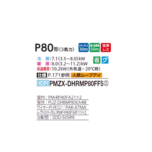 三菱 PMZX-DHRMP80FF5 業務用エアコン 1方向天井カセット ズバ暖スリム DHシリーズ 同時ツイン P80形 3馬力 三相 200V ワイヤード ♪