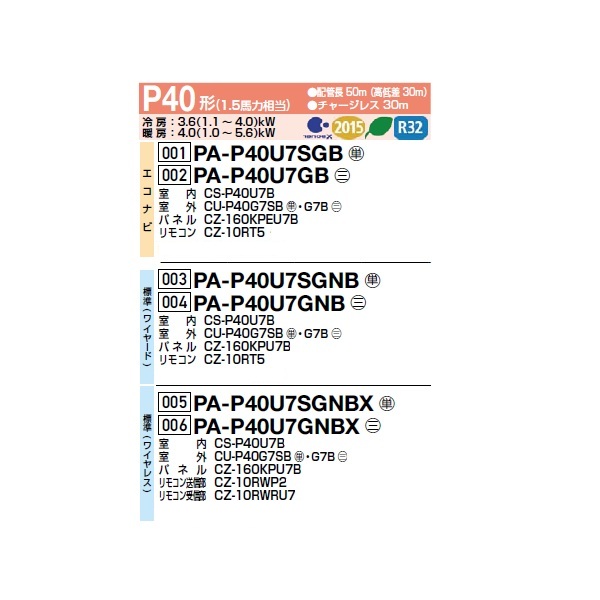 パナソニック PA-P40U7GNBX 業務用エアコン 4方向天井カセット形 XEPHY Premium 標準(ワイヤレス) シングル P40形 1.5馬力 三相200V ♪