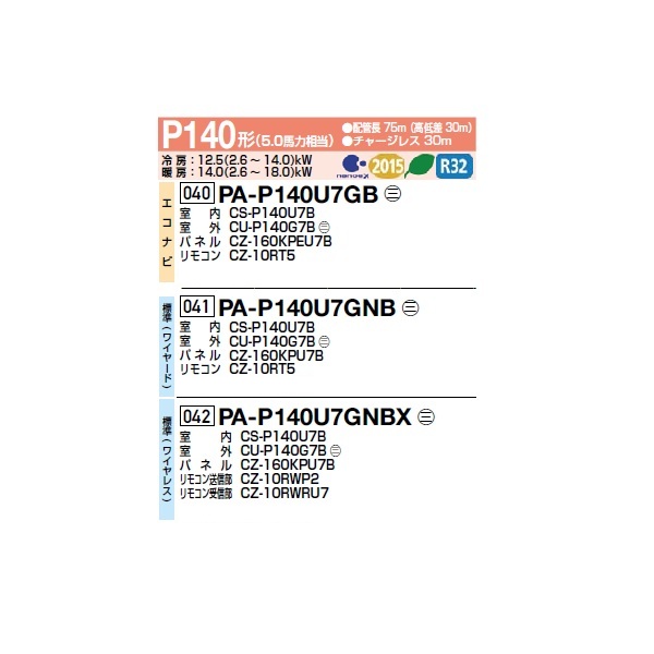 パナソニック PA-P140U7GNBX 業務用エアコン 4方向天井カセット形 XEPHY Premium 標準(ワイヤレス) シングル P140 形5.0馬力 三相200V ♪ [戻る]