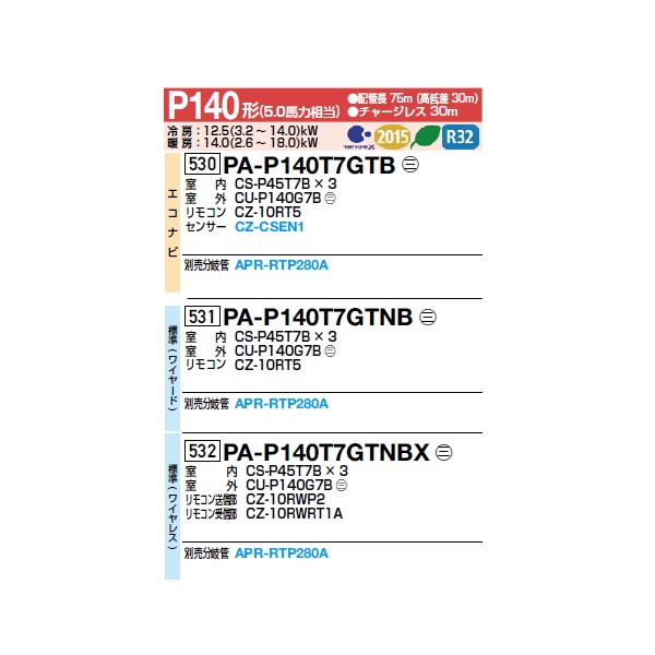 パナソニック [PA-P140T7GTNBX+分岐管] 業務用エアコン 天井吊形 標準(ワイヤレス) 同時トリプル P140 形5.0馬力 三相200V ♪