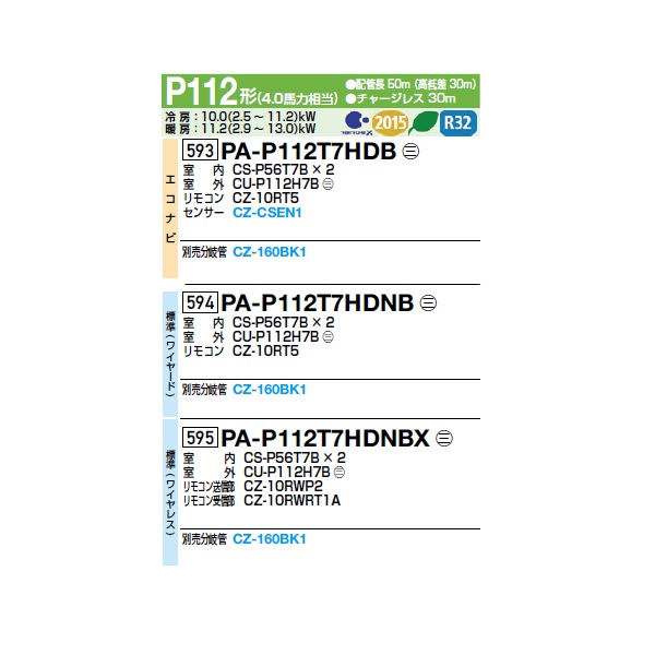 パナソニック [PA-P112T7HDNBX+分岐管] 業務用エアコン 天井吊形 標準(ワイヤレス) 同時ツイン P112 形4.0馬力 三相200V ♪