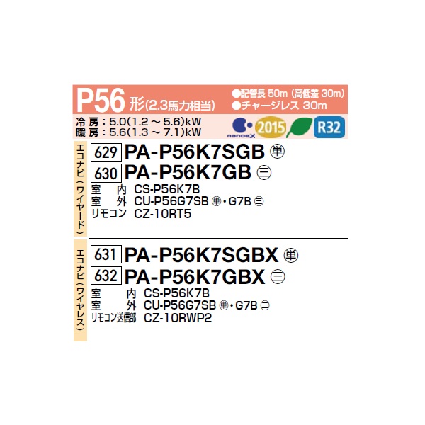 パナソニック PA-P56K7GBX 業務用エアコン 壁掛形 XEPHY Premium エコナビ(ワイヤレス) シングル P56 形2.3馬力 三相200V ♪