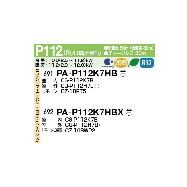 パナソニック PA-P112K7HBX 業務用エアコン 壁掛形 XEPHY Eco エコナビ(ワイヤレス) シングル P112形 4.0馬力 三相200V ♪