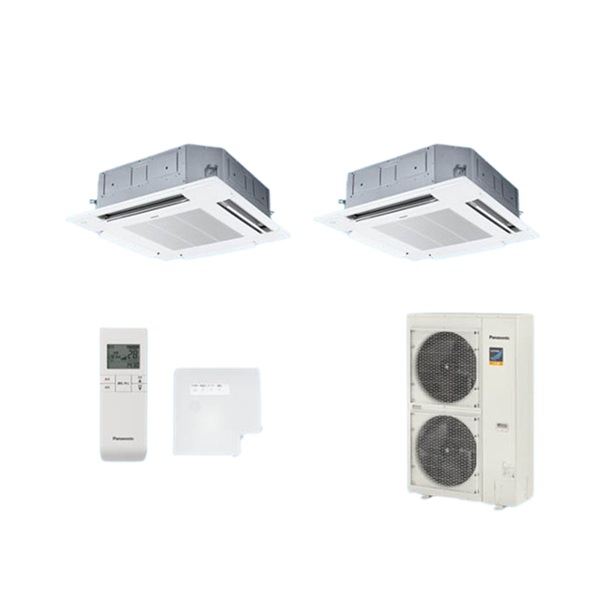 パナソニック [PA-P80U7KDNBX+分岐管] 業務用エアコン 4方向天井カセット形 フル暖 XEPHY 標準(ワイヤレス) 同時ツイン P80形 3.0馬力 三相200V ♪