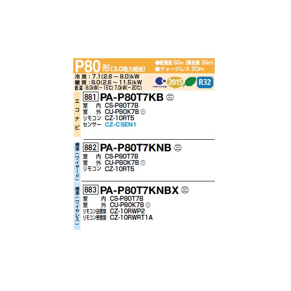 パナソニック PA-P80T7KNBX 業務用エアコン 天井吊形 フル暖 XEPHY 標準(ワイヤレス) シングル P80形 3.0馬力 三相200V ♪