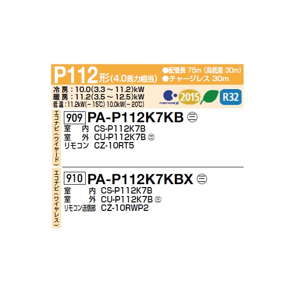 パナソニック PA-P112K7KBX 業務用エアコン 壁掛形 フル暖 XEPHY エコナビ(ワイヤレス) シングル P112形 4.0馬力 三相200V ♪