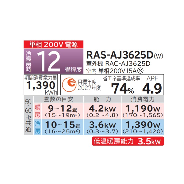 日立 RAS-AJ3625D(W) エアコン 12畳 ルームエアコン AJシリーズ 白くまくん 単相200V 12畳程度 スターホワイト (RAS-AJ36R2(W)の後継品) ♪