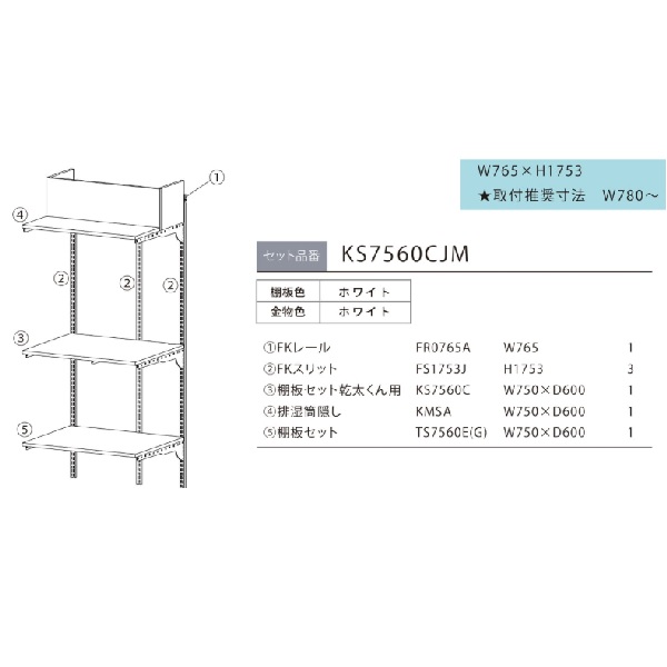 藤山 KS7560CJM Fitrack×乾太くん専用台 乾太くん専用台セット 排湿管付き フィットラック W765×H1753