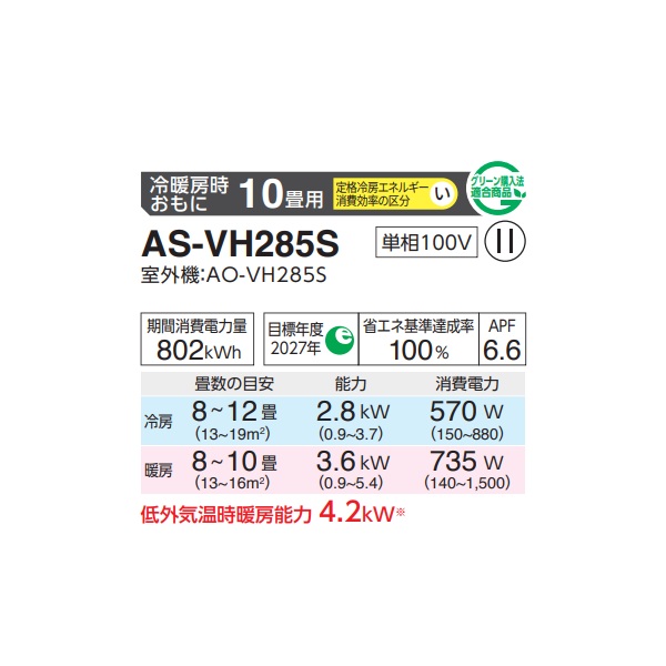 富士通 AS-VH285S エアコン 10畳 ルームエアコン VHシリーズ ノクリア 単相100V 10畳程度 ホワイト (AS-VH284Rの後継品) ♪♭ [戻る]