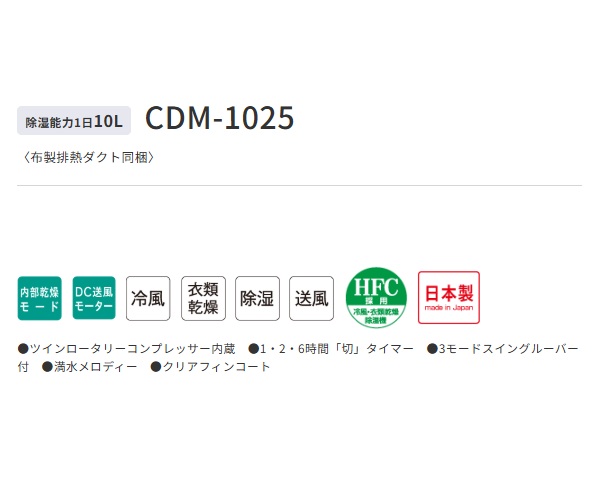 コロナ CDM-1025 (AS) どこでもクーラー 布製排熱ダクト同梱 10L [戻る]
