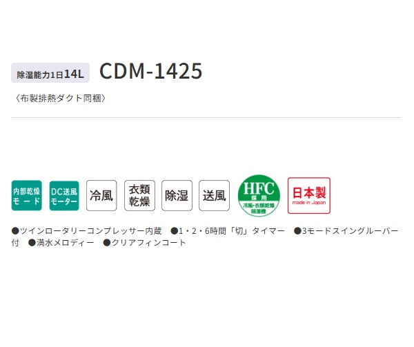 コロナ CDM-1425(W) どこでもクーラー 布製排熱ダクト同梱 14L
