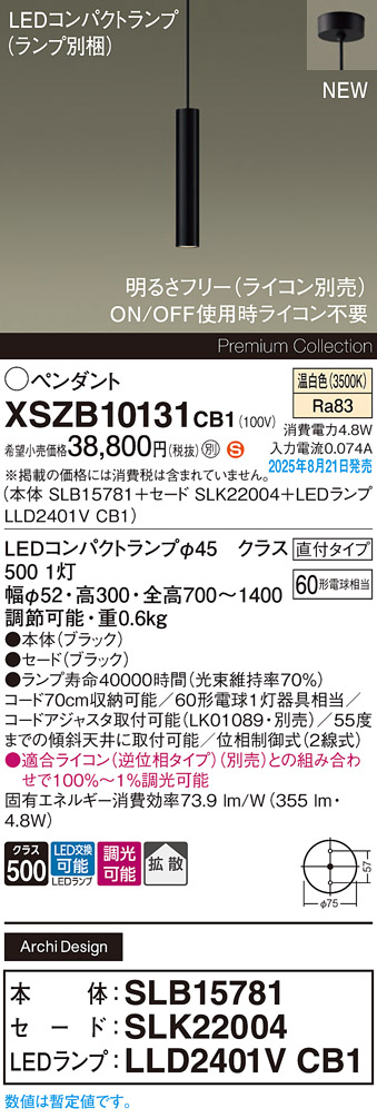 パナソニック XSZB10131CB1(ランプ別梱) ペンダント 調光(ライコン別売) LED(温白色) 天井吊下型 拡散タイプ 直付タイプ LEDコンパクトランプ交換型 ブラック