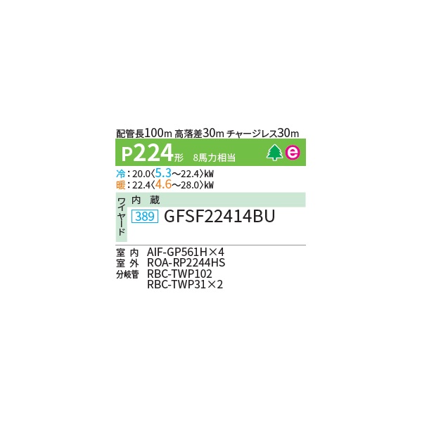 日本キヤリア/旧東芝 GFSF22414BU 業務用エアコン 床置形 スタンド スーパーパワーエコ ゴールド 同時ダブルツイン P224形 8馬力 三相200V ワイヤード ♪∀