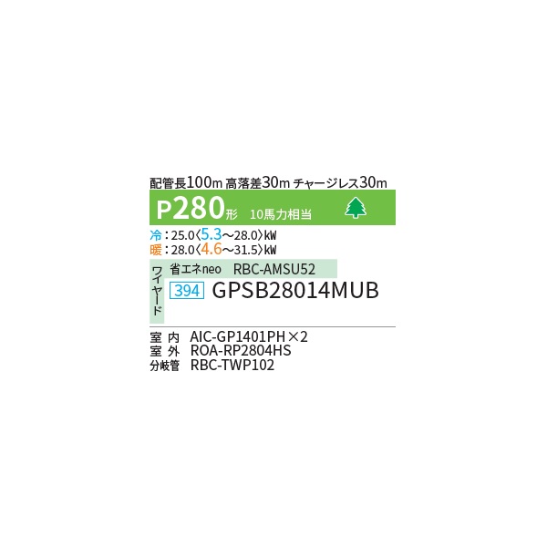 日本キヤリア/旧東芝 GPSB28014MUB 業務用エアコン 厨房用エアコン 天井吊形 スーパーパワーエコ ゴールド 同時ツイン P280形 10馬力 三相200V ワイヤード ♪∀ [戻る]