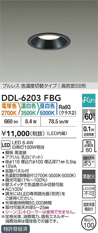 大光電機(DAIKO) DDL-6203FBG ダウンライト 埋込穴φ100 調光(調光器別売) 電球色 温白色 昼白色 LED内臓 高気密SB型 よくばり ブラック