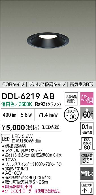 大光電機(DAIKO) DDL-6219AB ダウンライト 埋込穴φ100 段調 温白色 LED内臓 高気密SB型 ブラック