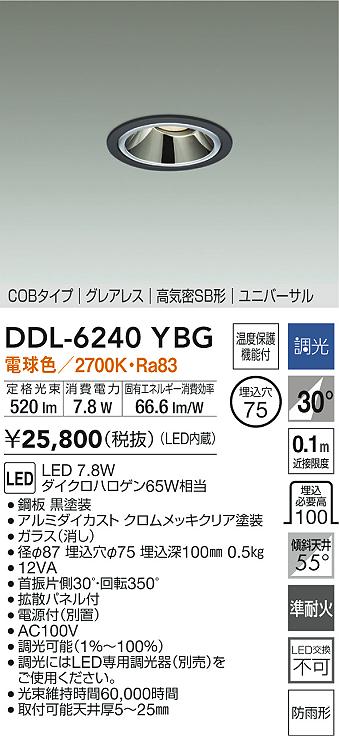 大光電機(DAIKO) DDL-6240YBG ダウンライト 埋込穴φ75 調光(調光器別売) 電球色 LED内蔵 電源別置 COB グレアレス 高気密SB形 ユニバーサル 防雨形 ブラック