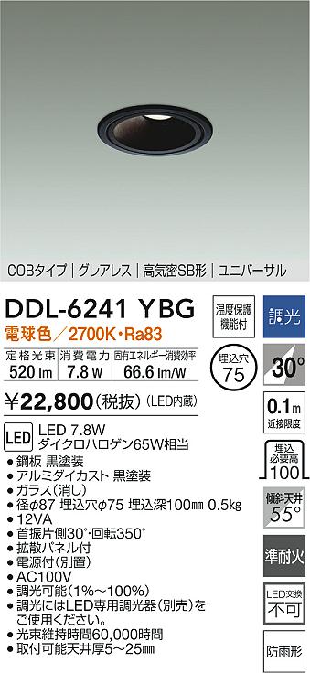 大光電機(DAIKO) DDL-6241YBG ダウンライト 埋込穴φ75 調光(調光器別売) 電球色 LED内蔵 電源別置 COB グレアレス 高気密SB形 ユニバーサル 防雨形 ブラック