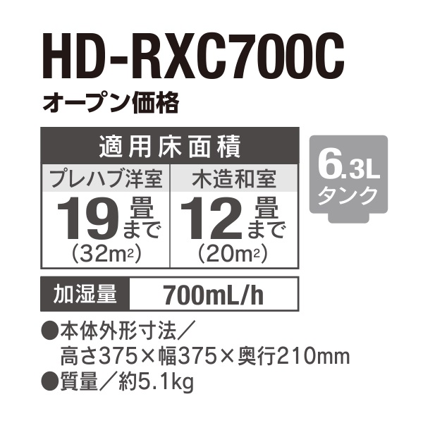 ダイニチ HD-RXC700C(T) ハイブリッド式加湿器 RXCタイプ ショコラブラウン 木造12畳プレハブ洋室19畳まで ℃℃